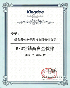 烟台天使电子科技有限责任公司,主要经营金蝶软件的销售及服务。从1998年8月开始代理金蝶系列产品将近20年,是金蝶烟台地区的白金级别核心代理商和售后技术服务中心。